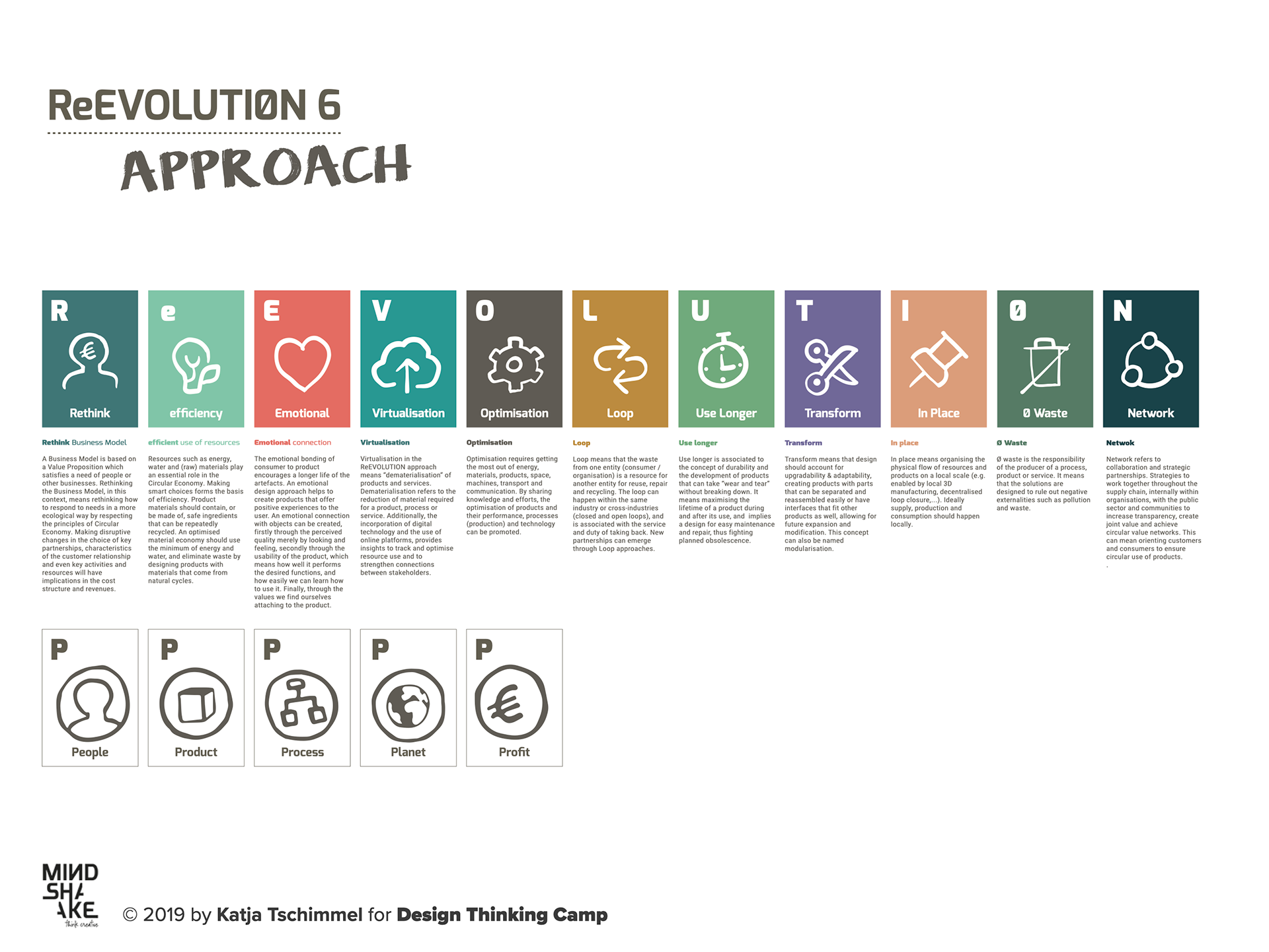Na Mindshake adotamos a letra E para facilitar a memorização das fases dos nossos modelos. Em coerência, o ReEvolution também tem 6 fases.